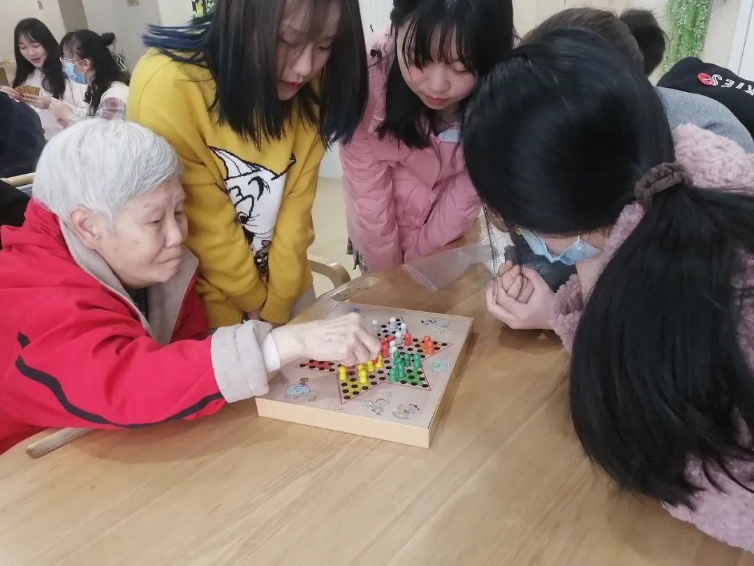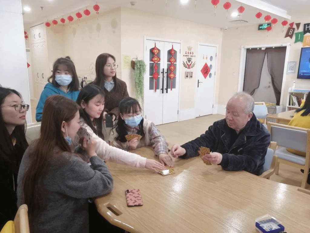 在本次志愿活动中,志愿者们为老人们献上了精心准备的歌曲。其中不论是高亢有力的《一二三四歌》,还是婉转动听的流行歌曲《小酒窝》,《勇气》,每一首歌都饱含着志愿的热情,也逐渐打动了现场的每一位观众。表演结束后,有志愿者陪爷爷奶奶们一起做娱乐活动:打麻将、打扑克牌、下跳棋......现场欢声笑语,气氛十分活跃,也有志愿者和老人们进行了一场交心的对话,听他们讲述自己的过往生动的故事。