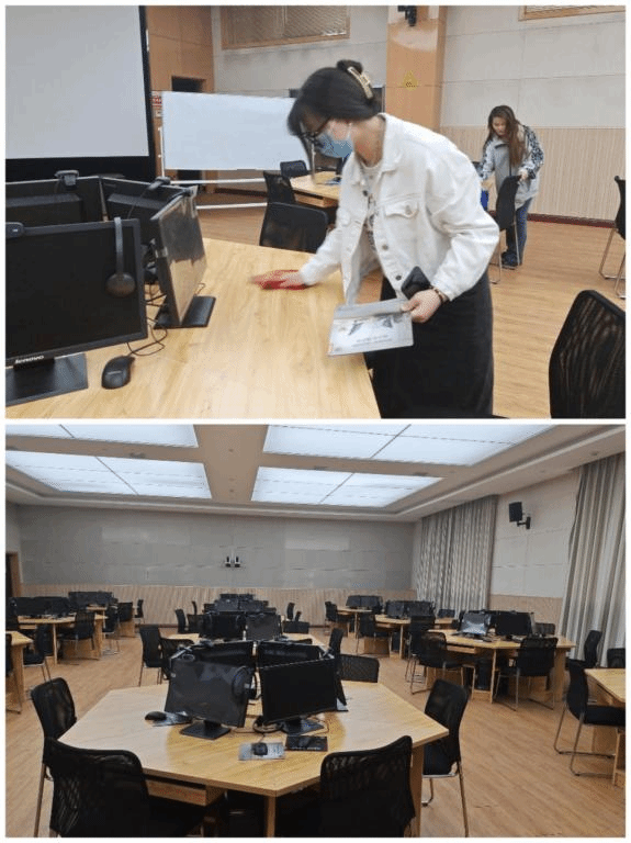 25名志愿者分成多个小组,分别前往学院“党员之家”和多媒体语音实验室开展清扫活动。志愿者们仔细打扫着每一个角落——桌子、柜子、奖牌、窗台、地板。通过志愿者们的辛勤打扫,“党员之家”和多媒体语音实验室变得干净整洁、焕然一新。