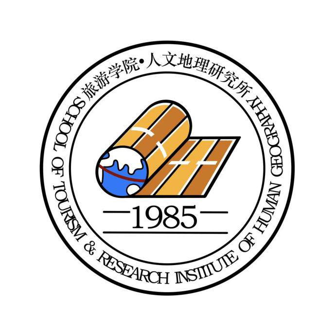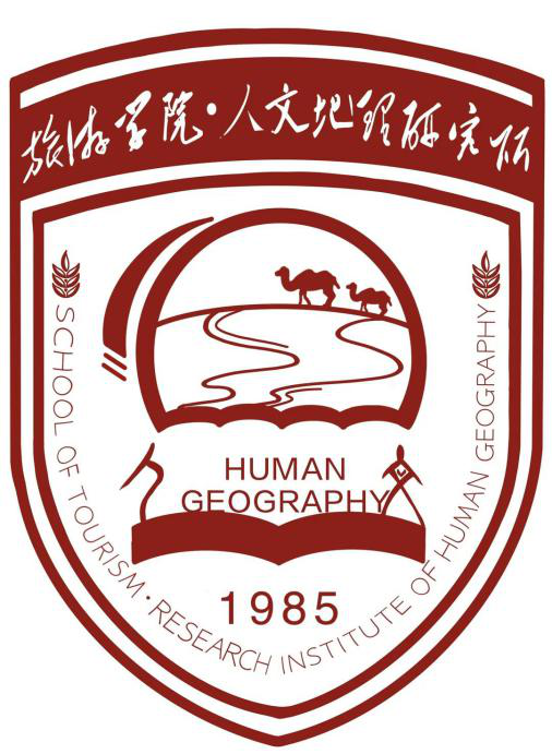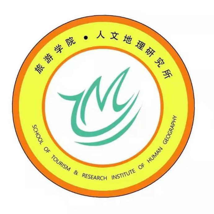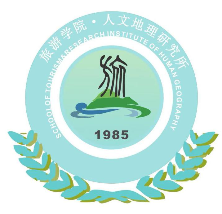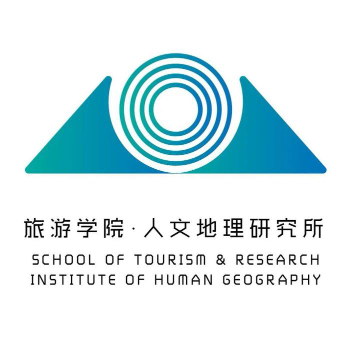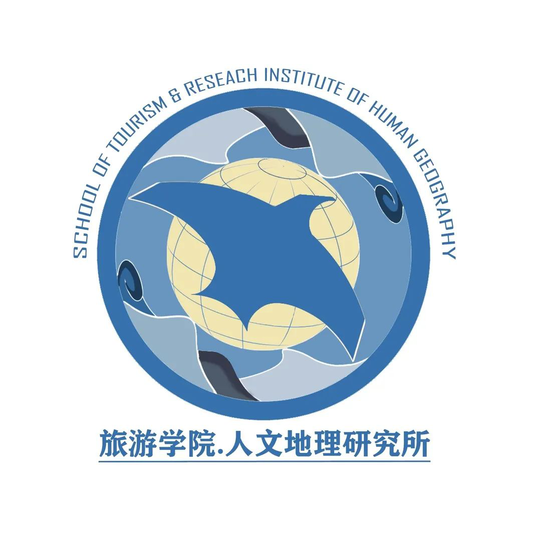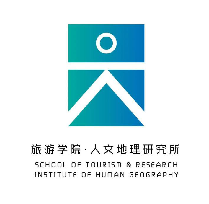·人文地理研究所”及其英文“SCHOOL OF TOURISM & RESEARCH INSTITUTE OF HUMAN GEOGRAPHY”字样环绕。标识学院归属,且上为英文、下为中文的布局结构,象征立足中土,接轨国际的格局。