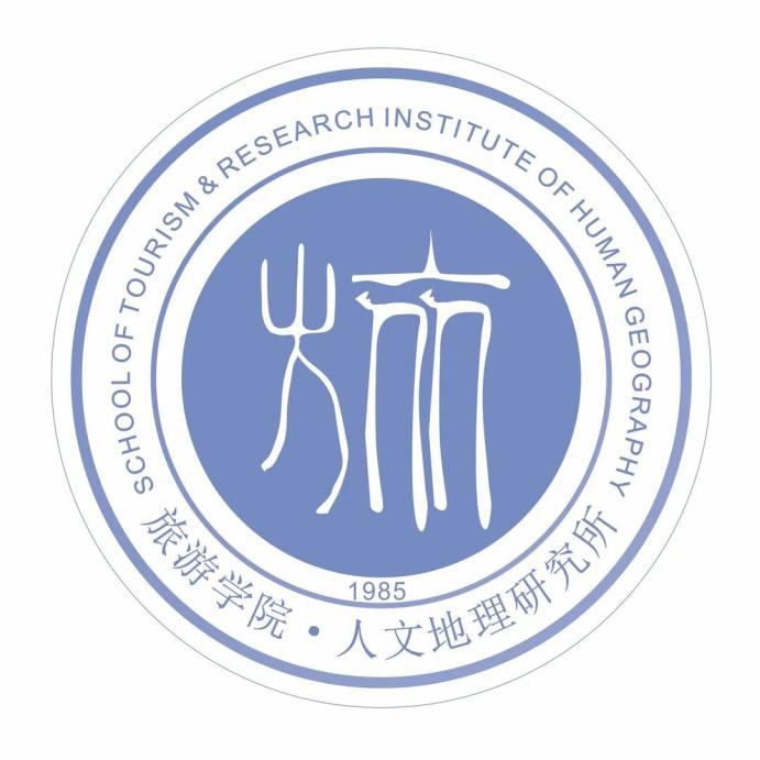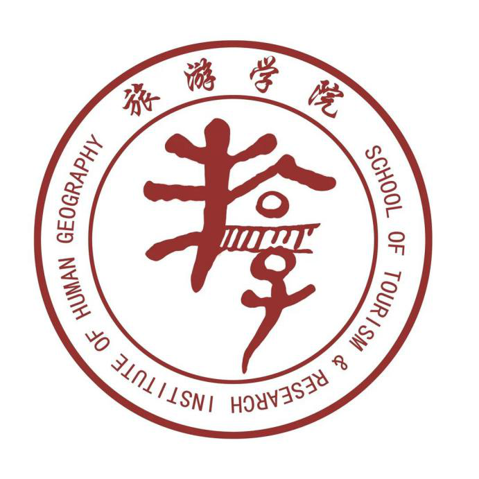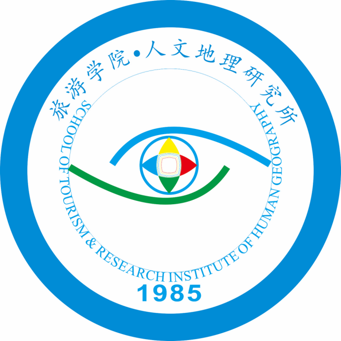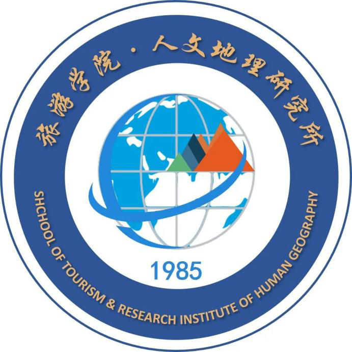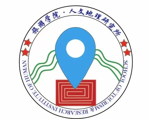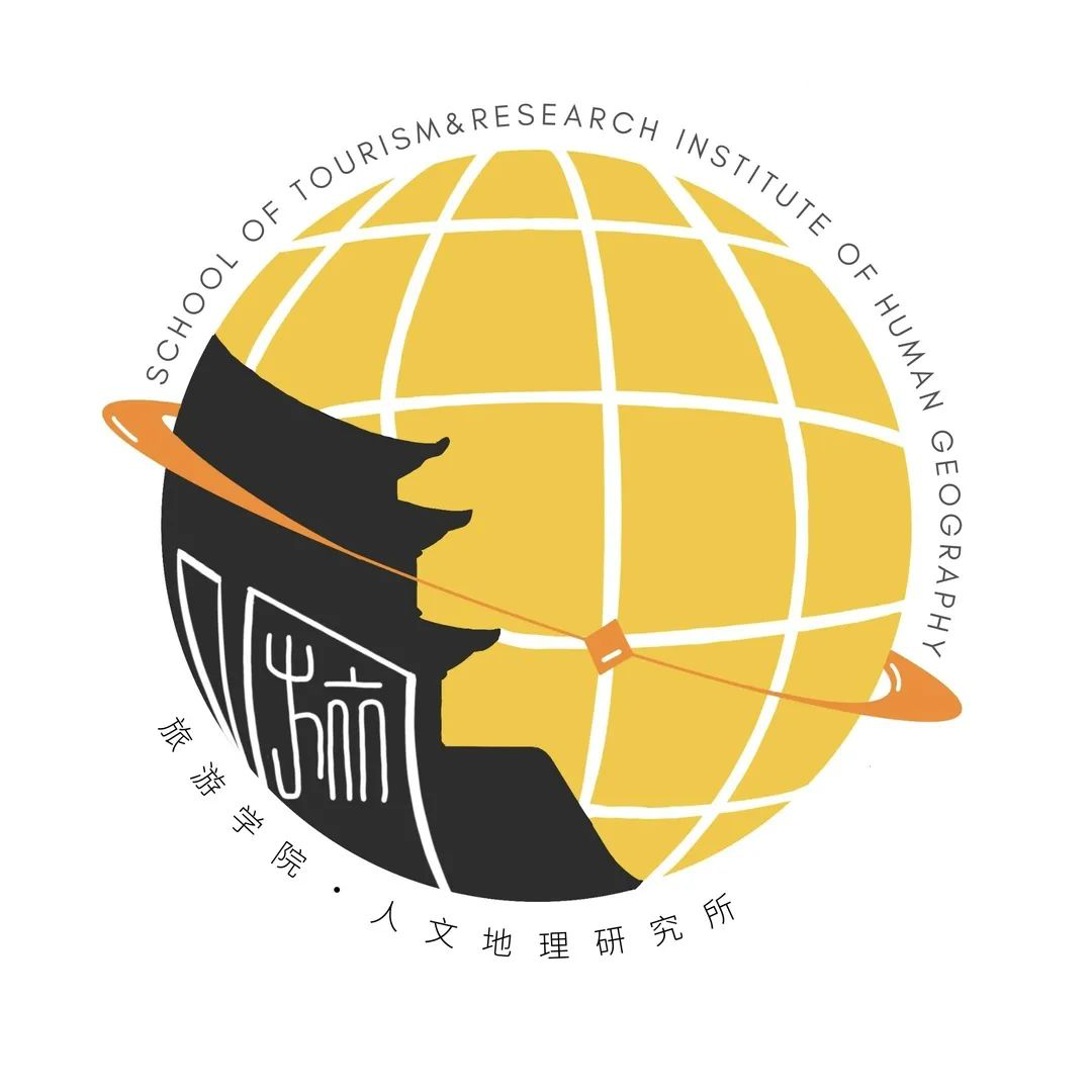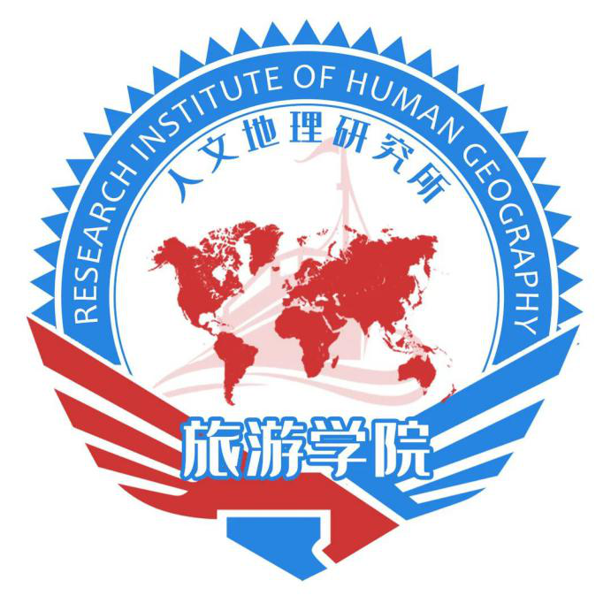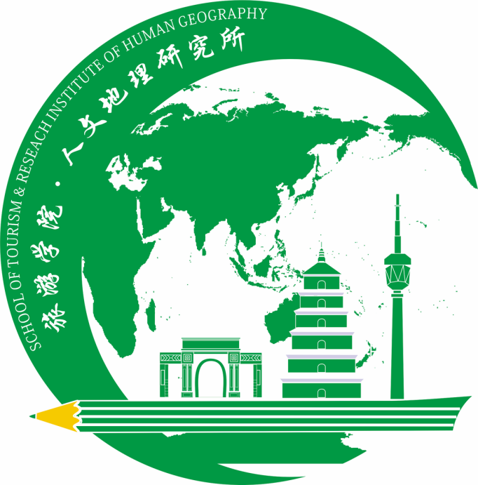 ·人文地理研究所”及其英文“SCHOOL OF TOURISM & RESEARCH INSTITUTE OF HUMAN GEOGRAPHY”字样环绕。标识学院归属,且上为英文、下为中文的布局结构,象征立足中土,接轨国际的格局。