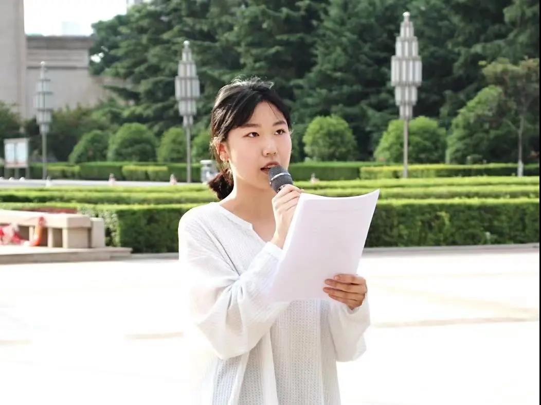 2020级酒店管理张译丹同学作为学生代表在国旗下演讲《为永远跟党走》。