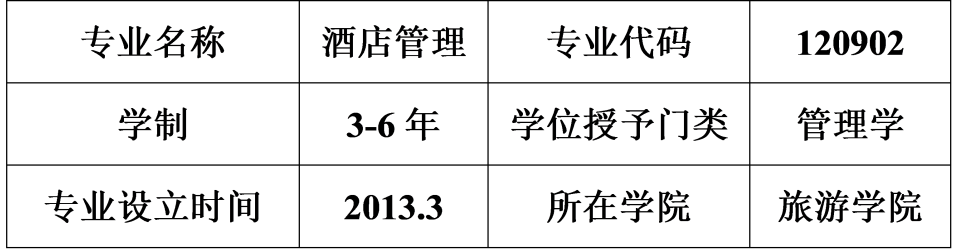 本专业坚持实施“国际化”、“社会化”教育战略,旨在培养具有国际视野、跨文化沟通能力强、酒店专业基础扎实,掌握现代酒店经营管理的理论、方法和手段,具有创新精神和创业能力的中高层酒店及现代服务业管理人才。
