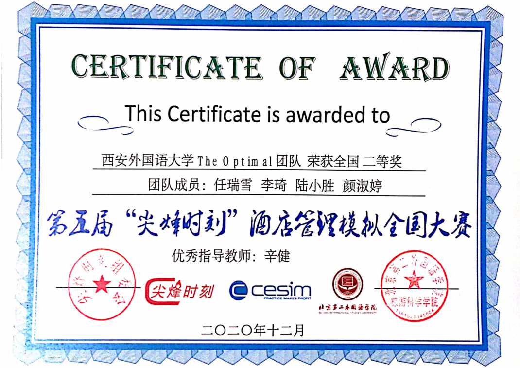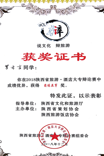 (1)陕西省本科院校酒店管理专业唯一的“一流专业”建设点;