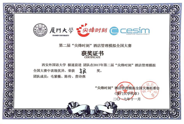 2013年创立,2019年入选首批陕西省一流专业建设点。专业坚持“国际化”“社会化”教育战略与“专业+英语”“学历教育+国际职业认证”的培养模式,立足培养具有国际视野、跨文化沟通能力和创新创业能力的中高层酒店及现代服务业管理人才。核心课程采用美国饭店业协会系列教材。专业教师均具有博士学位或高级职称,多数教师具有海外学习或进修经历。现已与万豪、迪士尼、诺唯真邮轮等全球著名企业合作共建实习基地。就业方向为旅游教育、国际饭店集团、跨国贸易公司等。