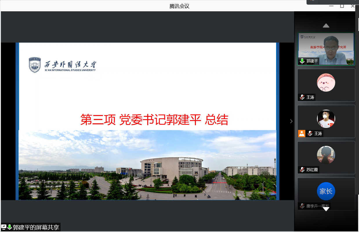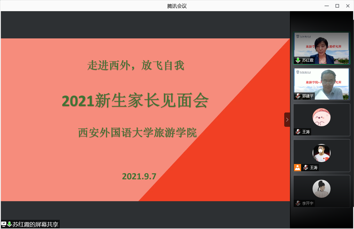 召开了2021级新生家长见面会。会议通过腾讯会议举办,会议由院党委书记郭建平主持,院长李开宇、副院长苏红霞、2021级辅导员王涛以及近120名新生家长参加了本次会议。