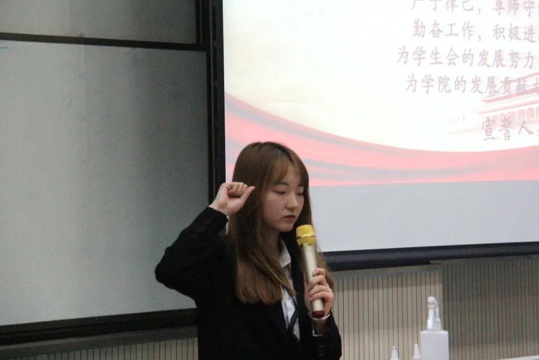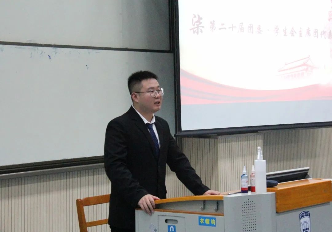 第二十届分团委副书记杜刘秦陇同学首先回顾了自己过去的一年中所做的工作并从中得出心得向新一届学生会分享。第一、勇于试错乐于接受部门工作;第二、学会合作、学会分享;第三、注重自己的学业。在最后希望学生会全心全意地为同学们服务,做好学院与同学们的桥梁、牢记责任、发光发热。