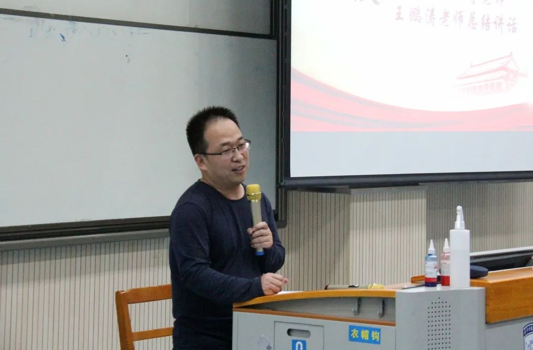 学生会指导老师王鹏涛老师用亲切的话语进一步拉进了和同学之间的距离,并且通过自己在学校的经历激励着同学们参与丰富多彩的活动,更是激励着同学们要有热情,要有把事情做好的勇气。老师还利用环保的角度提出了集体和奉献的重要性。