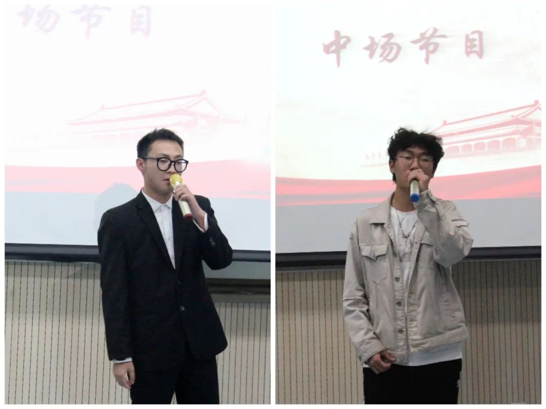 学生会主席团成员慕东良带领合唱团歌《光荣啊!中国共青团》。