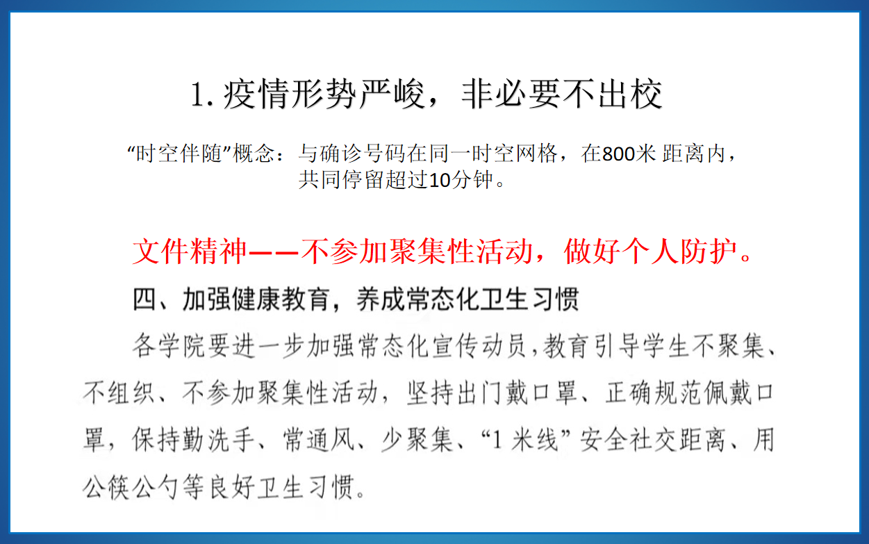 为引导青年学生厚植爱国爱校情怀,强化责任担当,坚决树牢战胜疫情的信心和决心,10月21日晚,结合学校疫情防控工作会议精神和《关于加强近期学生疫情防控工作的通知》文件要求,好色网