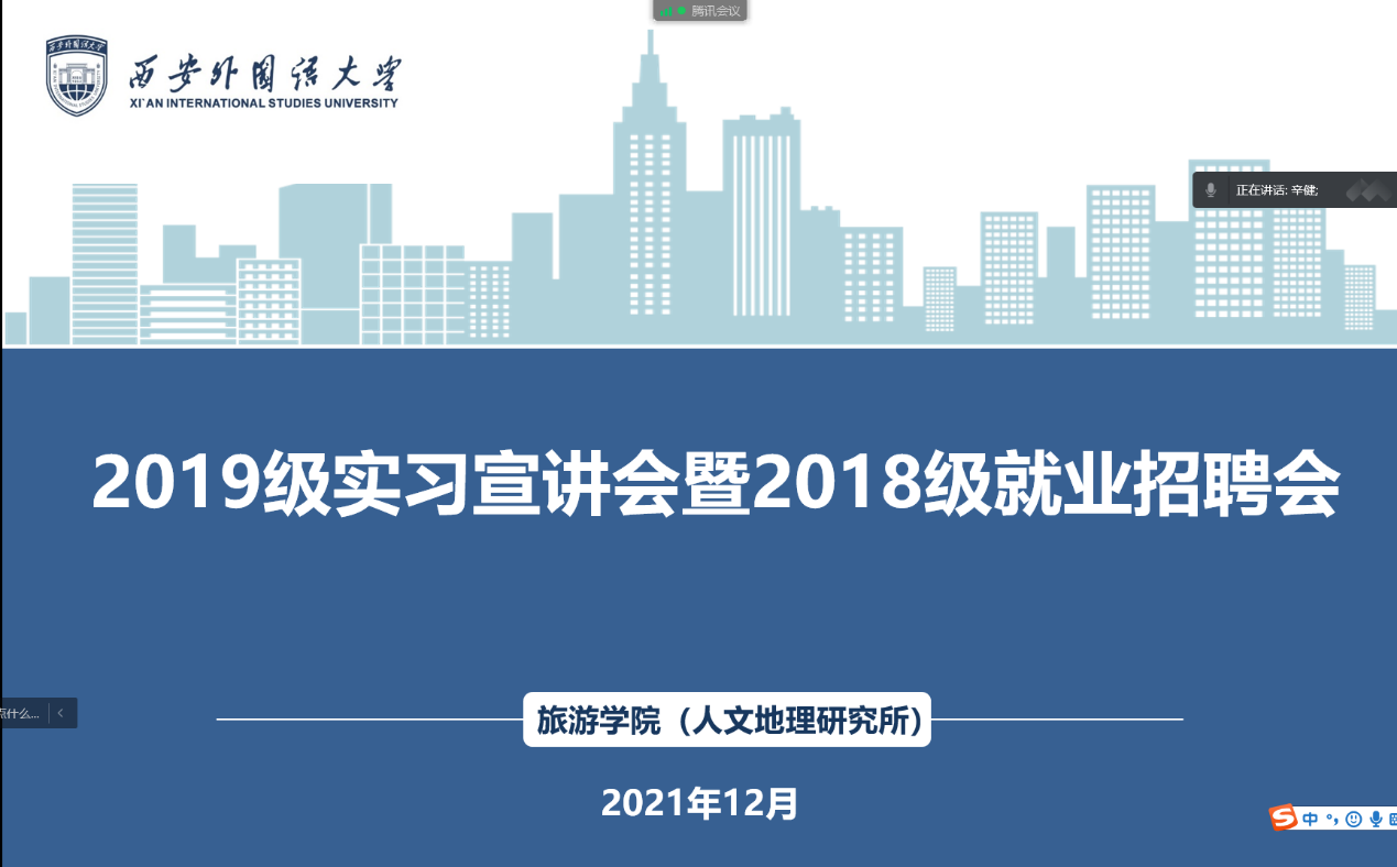 开展2019级实习宣讲会暨2018级就业招聘会。为积极落实疫情防控要求,本次活动全程在线上开展。参与招聘的企业有珠海喜来登酒店&瑞吉酒店、西安丽思卡尔顿酒店、西安W酒店,西安赛瑞喜来登酒店。旅游管理教研室主任辛健、辅导员高野、2019级旅游管理专业及酒店管理专业全体学生、2018级部分应届毕业生参与本次活动。活动由辅导员胡森文主持。